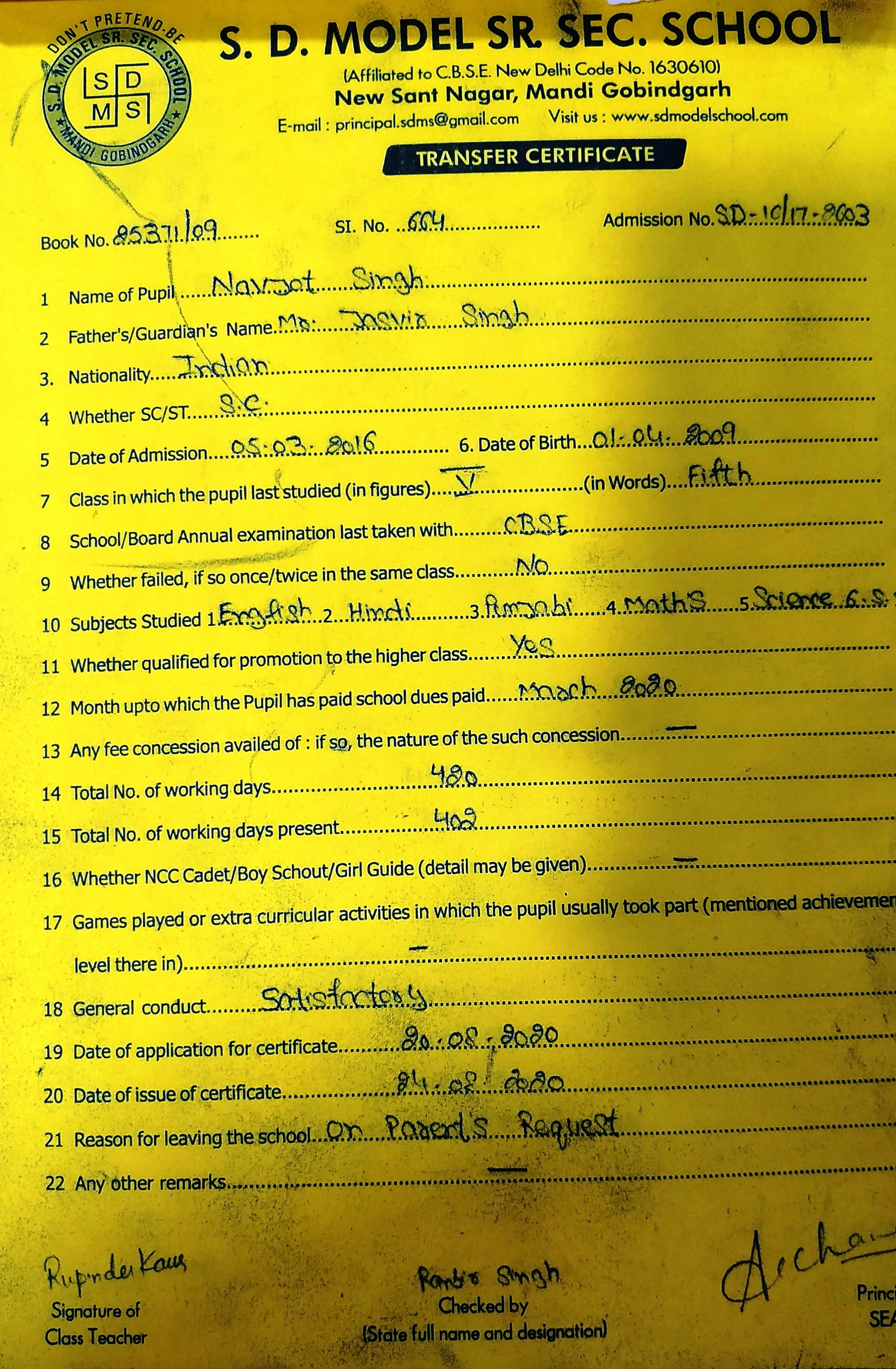 S.D. Model School, Mandi Gobindgarh